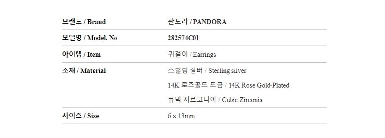 [명품] 판도라 282574C01 모먼트 플로팅 커브드 페더 귀걸이