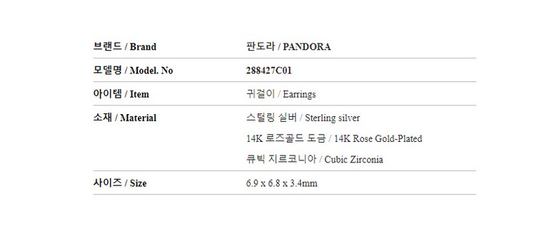 [명품] 판도라 288427C01 타임리스 스파클링 엘리베이티드 하트 귀걸이
