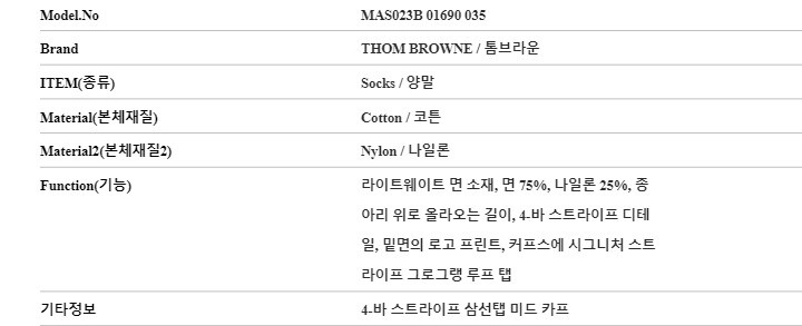 | 1. 종류 | 양말 |