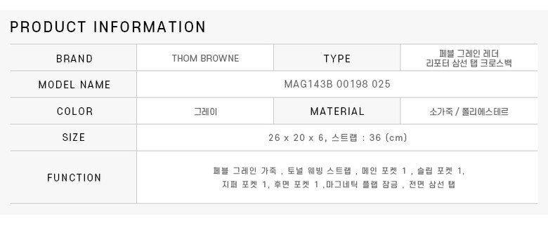 - #리본즈코리아 #MAG143B00198025 #[명품] #톰브라운 #MAG143B #00198 #025 #페블 #그레인 #삼선탭 #리포터 #크로스백 #남성 #가방/핸드백 #크로스/메신저백