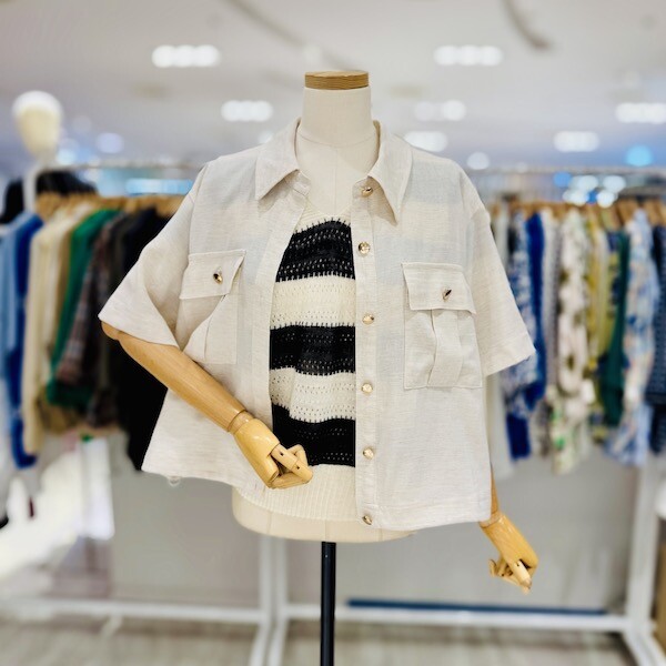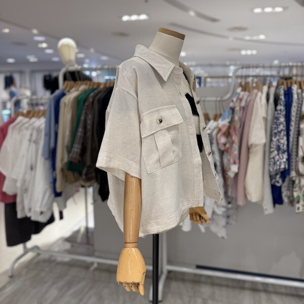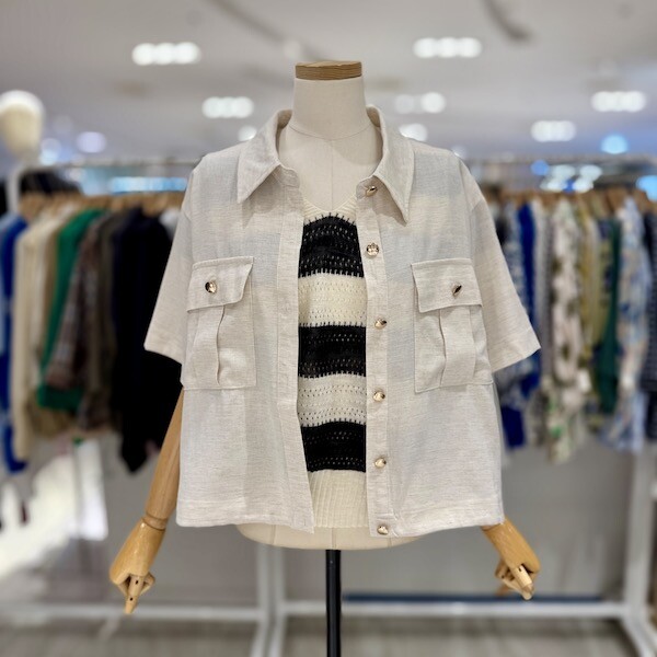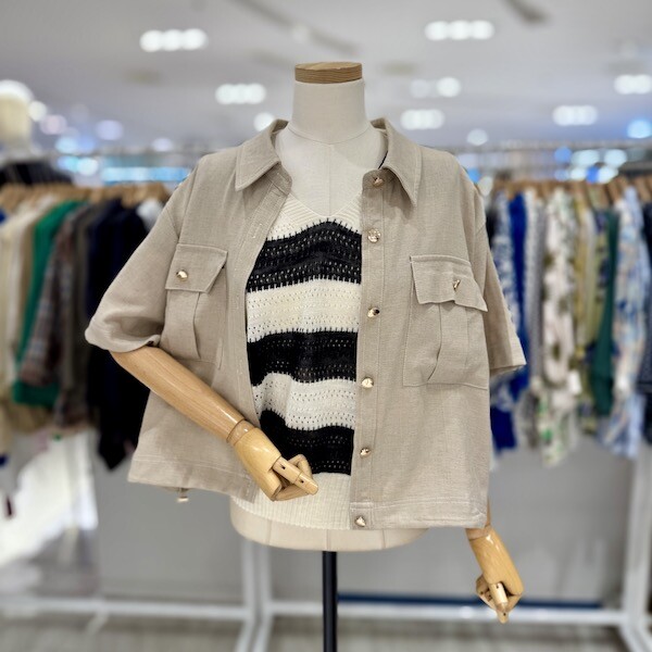 A25JK5221_린넨 반팔 밑단 스트링 자켓