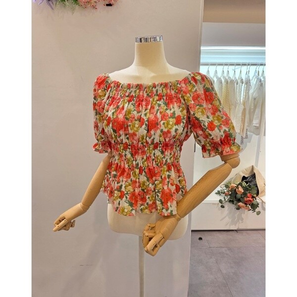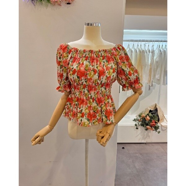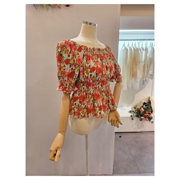 CP5WBL59_스모크 셔링 꽃 블라우스
