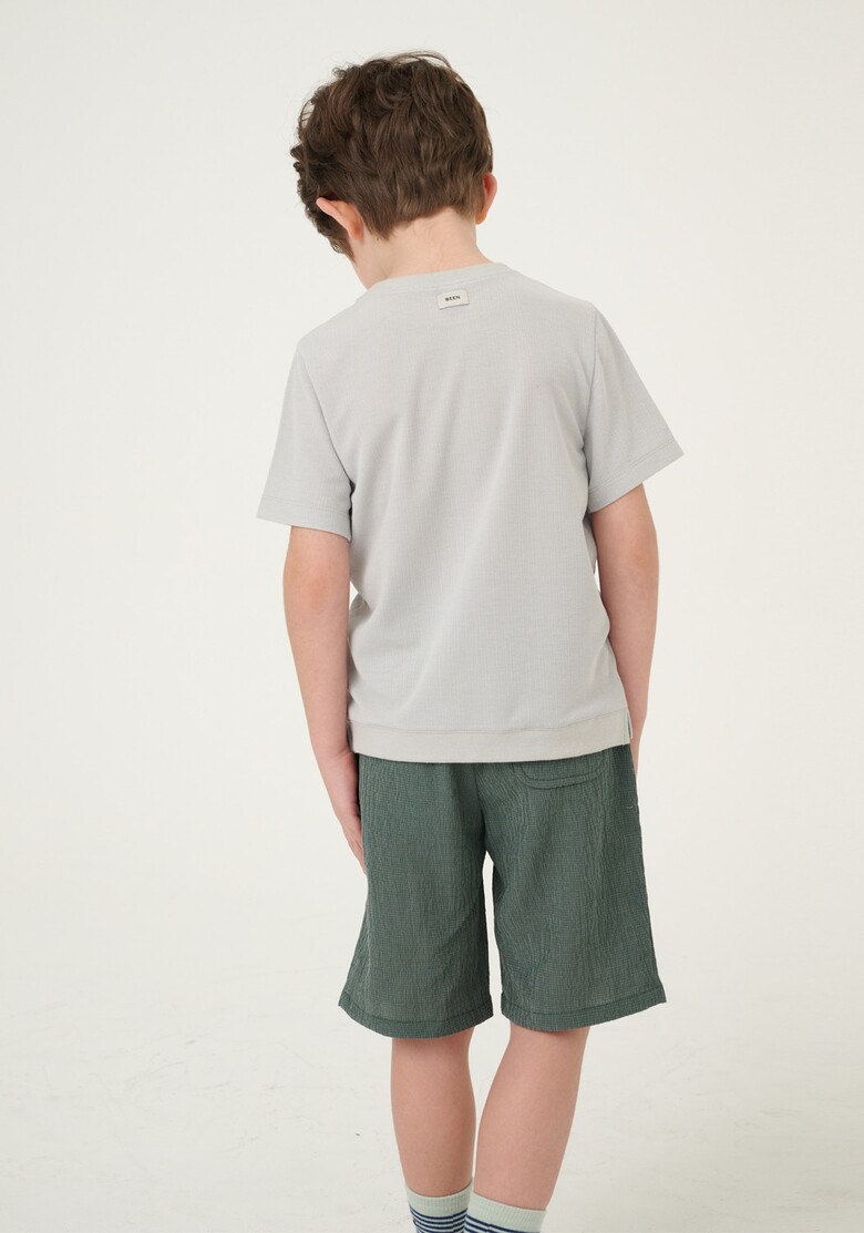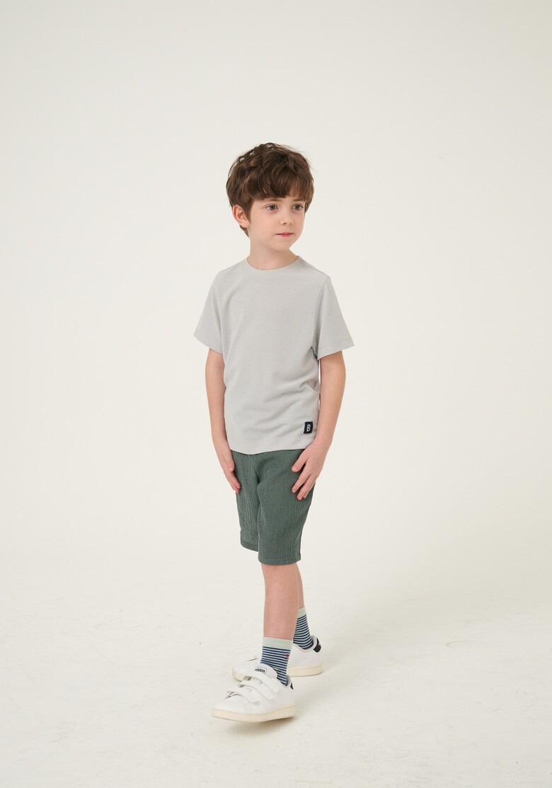 고급스러운 라이트 카키 컬러로 시어서커 소재의 카키 컬러 팬츠와 세련된 톤온톤 스타일링을 연출할 수 있으며 남아, 여아 모두에게 제안할 수 있는 아이템입니다.