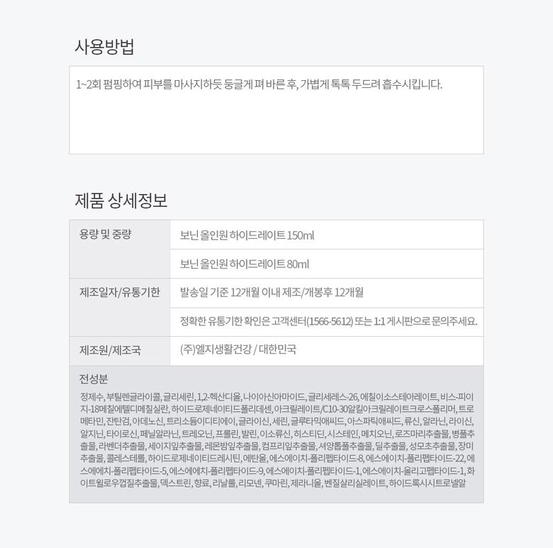 1. 용량 및 중량 150ml +80ml