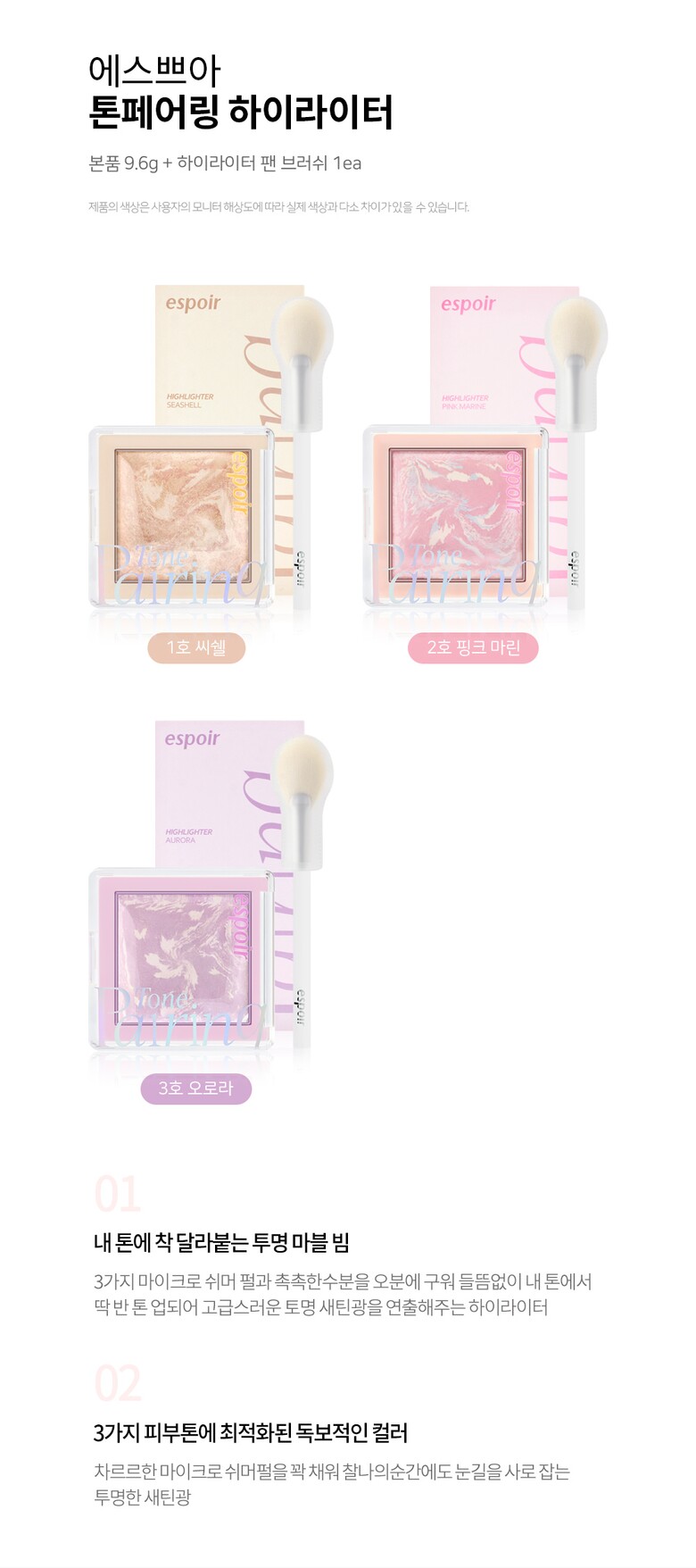 에스쁘아 톤페어링 하이라이터 마블 치크 3종택1 (브러쉬 추가구성)