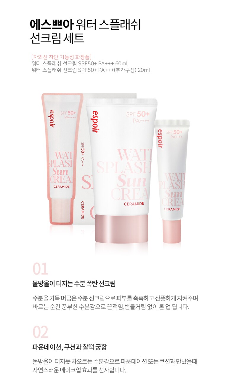 [에스쁘아] 워터 스플래쉬 핑크 톤업 수분 선크림 60ml+20m