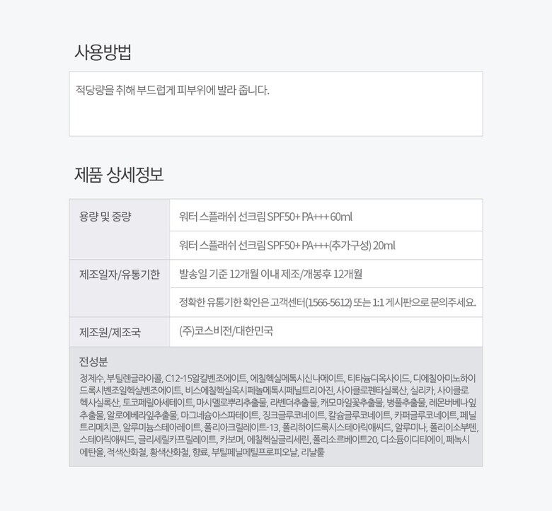 | 1. 용량 및 중량 | 60ml + 20ml |