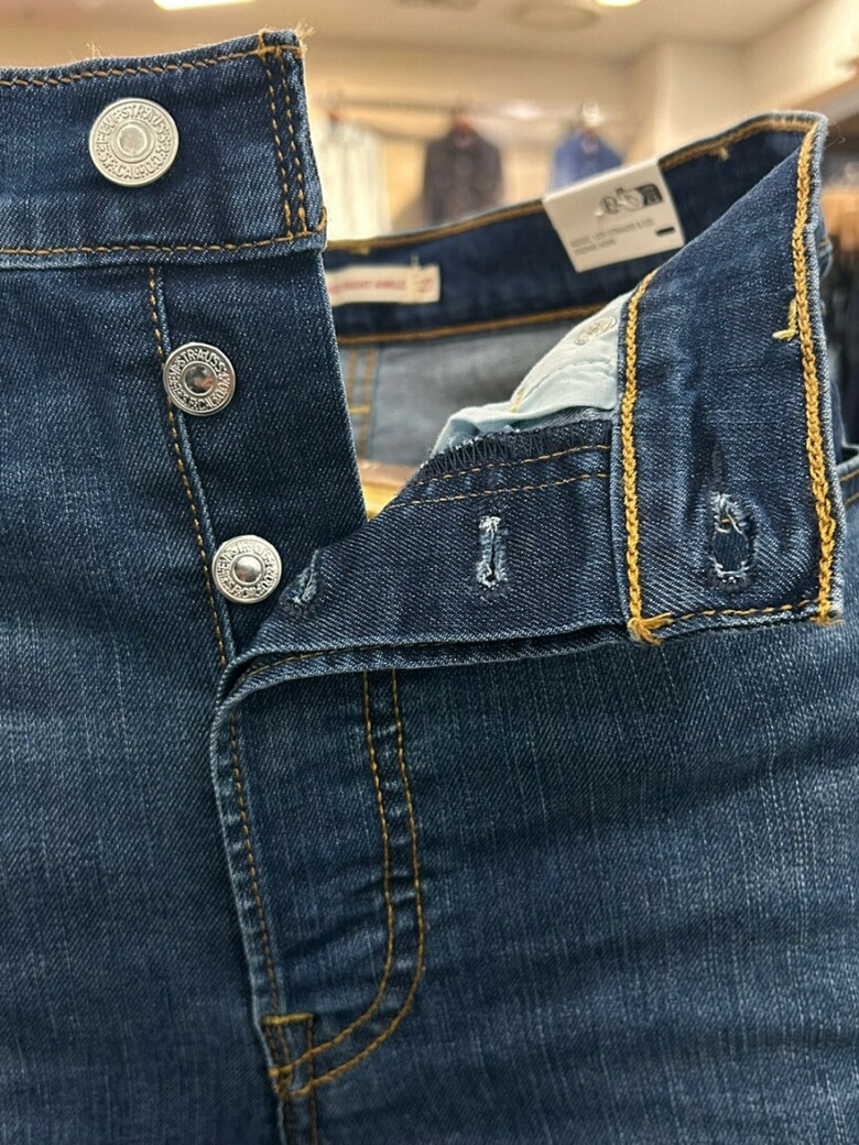 높은 밑위길이에 지퍼플라이가 아닌 버튼플라이로 되어있습니다