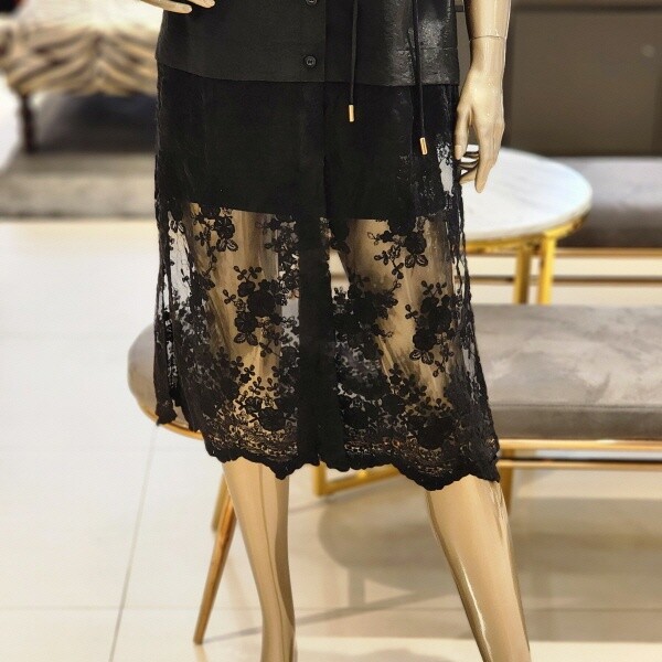 BFM5PNBP6090_레이스밑단 시스루롱블라우스