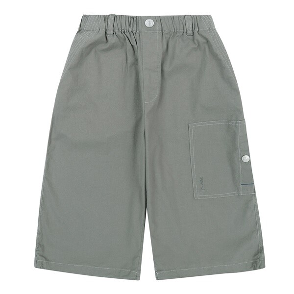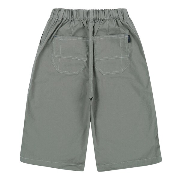 라이트베이지 컬러로 제안한 통고무줄 7부 우븐 팬츠입니다.