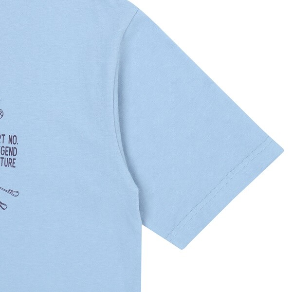 블루 컬러에 빈티지한 나염이 포인트인 반팔 티셔츠입니다.