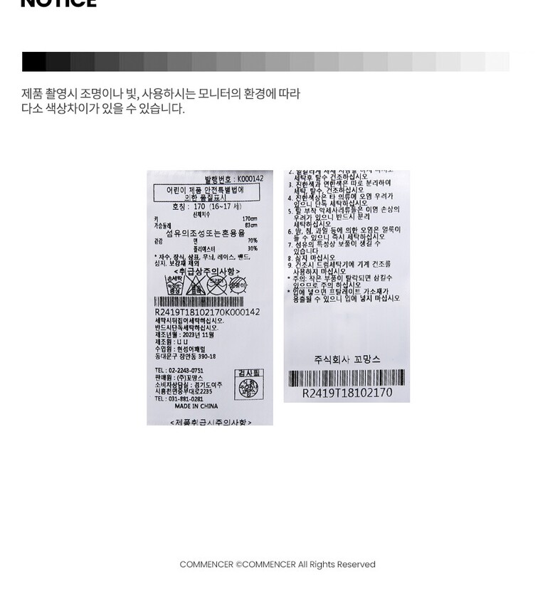 상품불량에 의한 반품, A/S, 품질보증 및 피해보상 등에 관한 사항은 소비자 분쟁해결기준(공정거래위원회 고시) 구매자가 미성년자인 경우에는 상품 구입시 법정대리인이 동의하지 아니하면 미성년자 본인 또는 법정대리인이 구매취소 할 수 있습니다. |