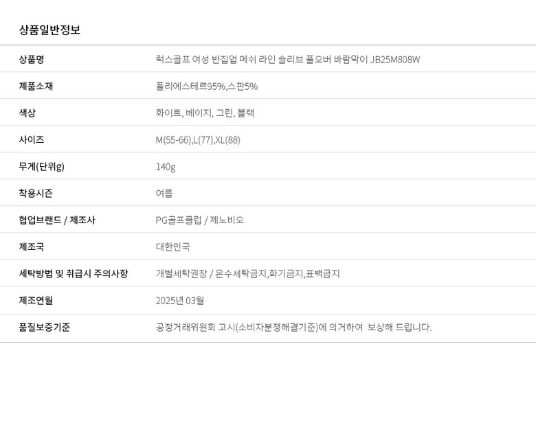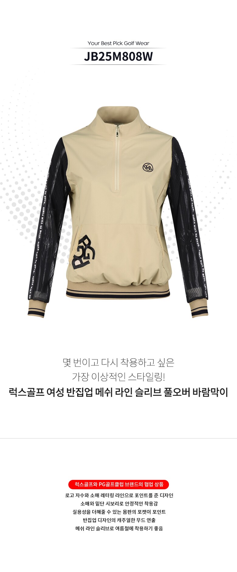 골피아 JB25M808W 여성 반집업 메쉬 라인 슬리브 풀오버 바람막이