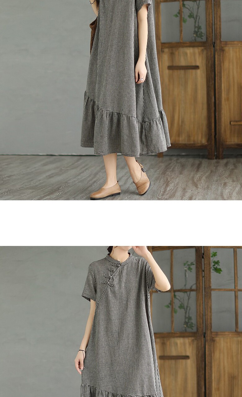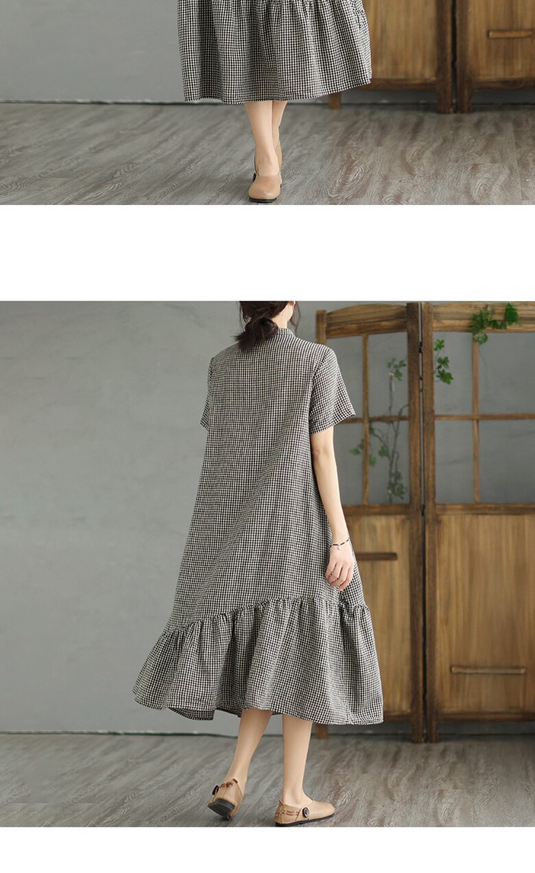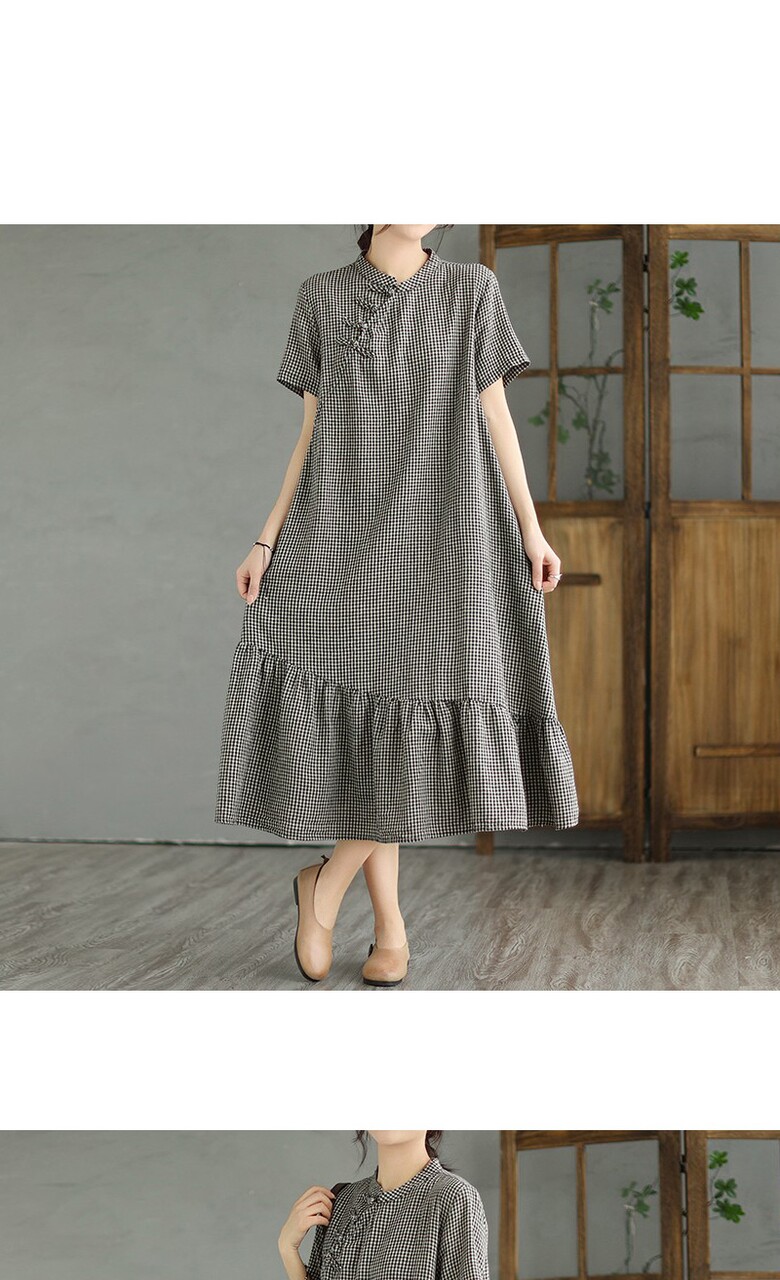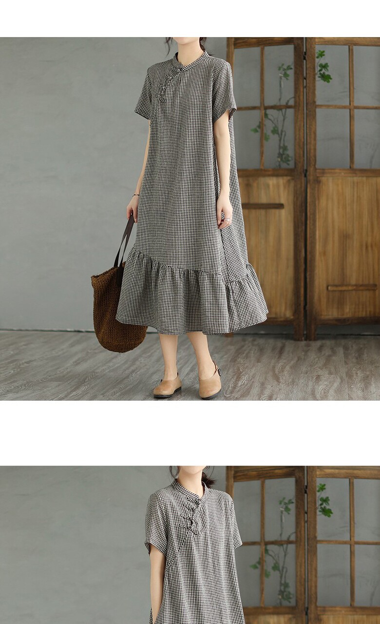 [~77까지]바키오 체크 포인트 차이나넥 원피스
