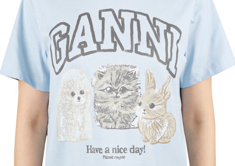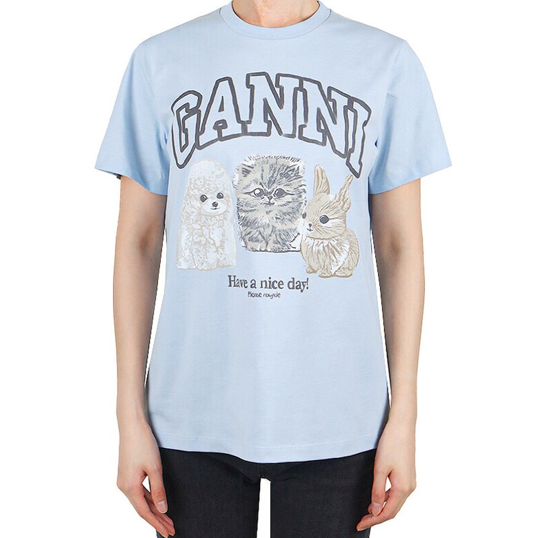 [명품] 가니 25FW 여성 애니멀 프린트 반팔티 샴브레이블루 T4278 570