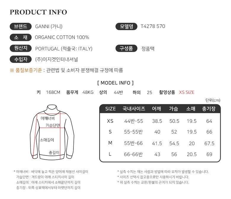 | 1. 제품 소재 (섬유의 조성 또는 혼용률을 백분율로 표시, 기능성인 경우 성적서 또는 허가서) | 상세페이지 참조 |