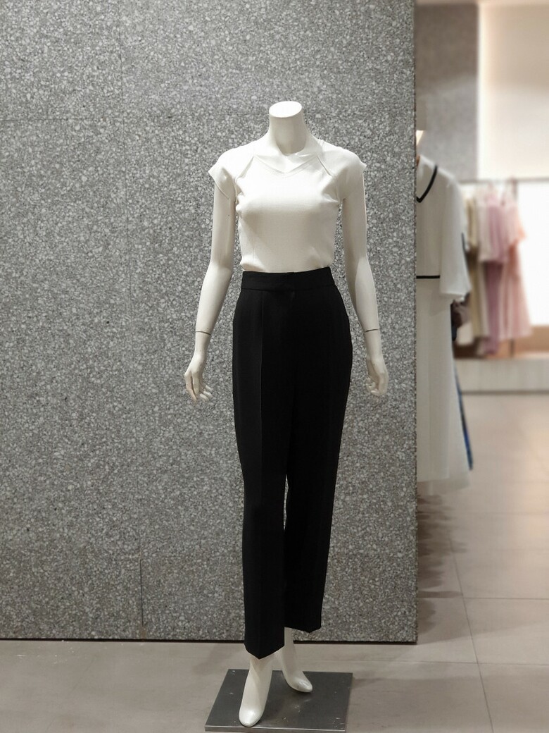 턱 디테일의 테이퍼드 핏으로 힙 라인과 허벅지 핏이