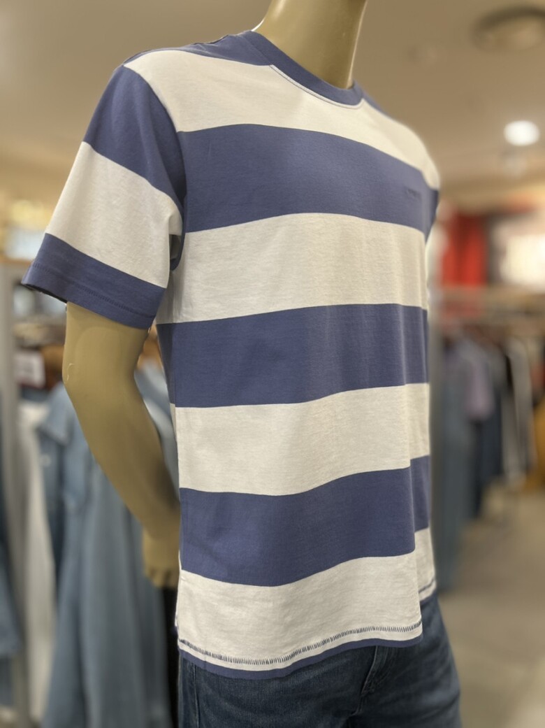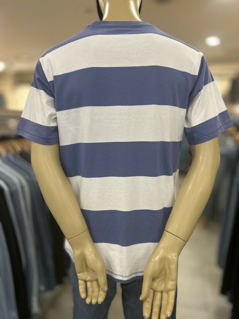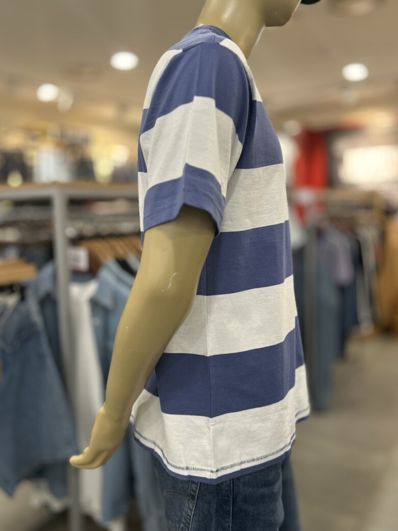 남녀공용 스트라이프 반팔 티셔츠입니다.