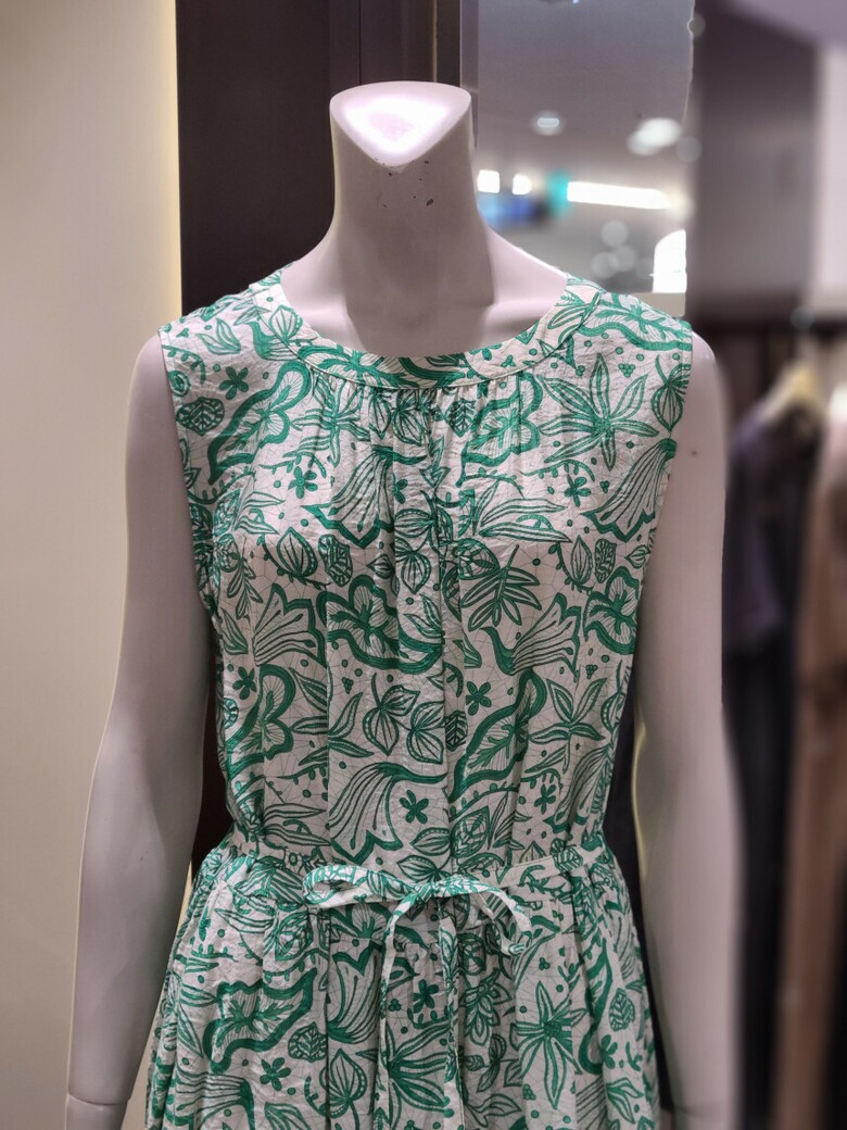 라운드넥 프린트 민소매 원피스입니다