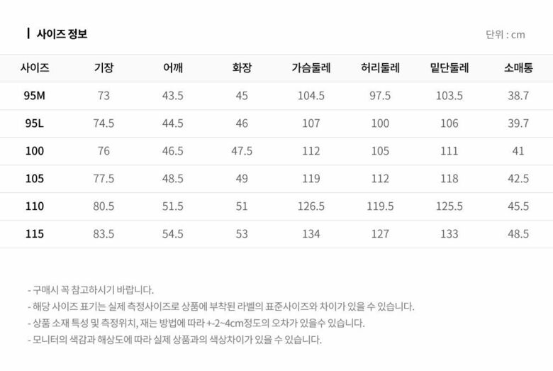 | 6. 세탁방법 및 취급시 주의사항 | 상품상세참조 |