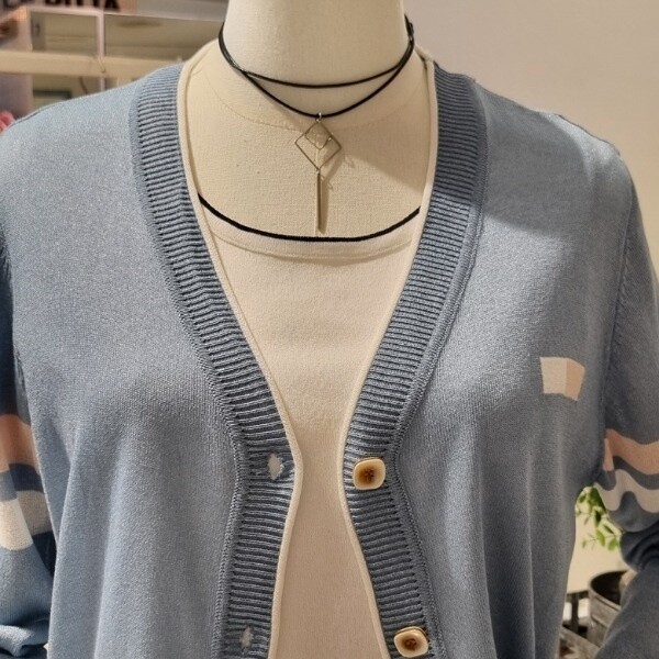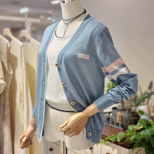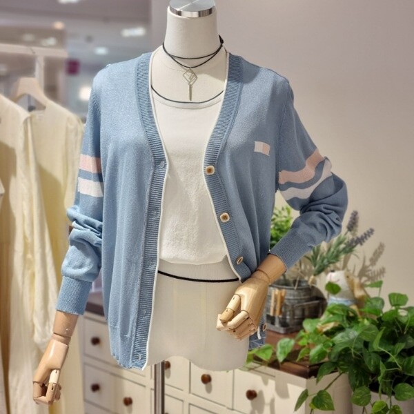 브이넥 가디건기본핏 스타일배색띠 디자인 포인트?펄사 짜임
