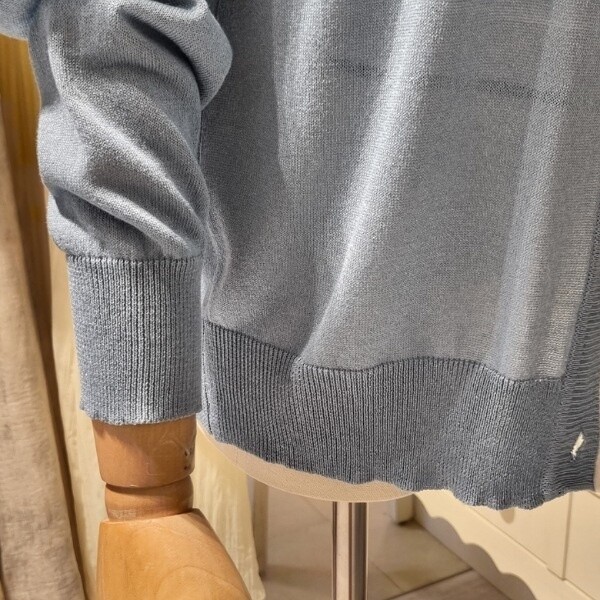섬유 특유의 냄새,마소재의 올 뭉침,니트 소재 특성상 실이 올라와 있거나 마감선이 튀어나오는 점