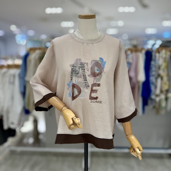 A25TS5253_린넨 ST 배색 7부 티셔츠