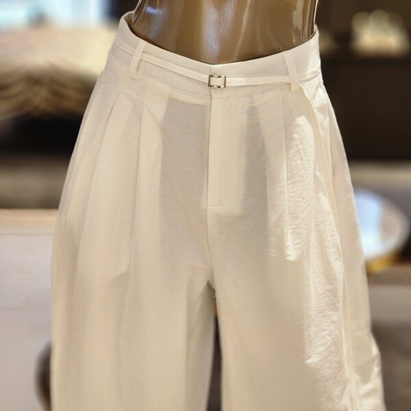 BFM5PNPC6160_핀턱 스트랩벨트 면 와이드팬츠