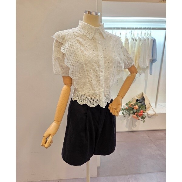 CP4WBL38_펀칭 양 레이스 카라 블라우스