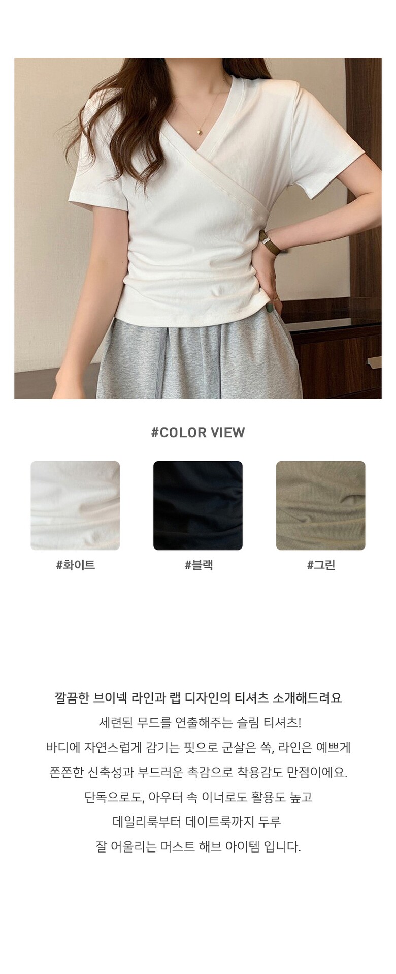 모티 랩 포인트 슬림핏 브이넥 티셔츠