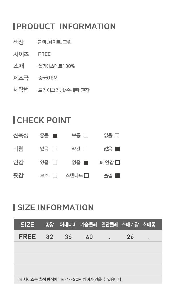 | 1. 제품 소재 (섬유의 조성 또는 혼용률을 백분율로 표시, 기능성인 경우 성적서 또는 허가서) | 상세페이지참고 |