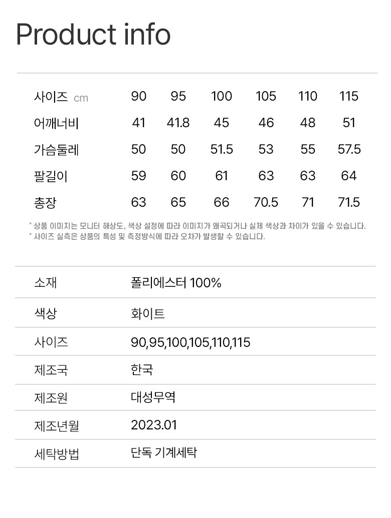 • 처음 배송된 상품상태와 다를 경우(세탁/착용 후 외출하신 경우) 반품이 불가합니다.