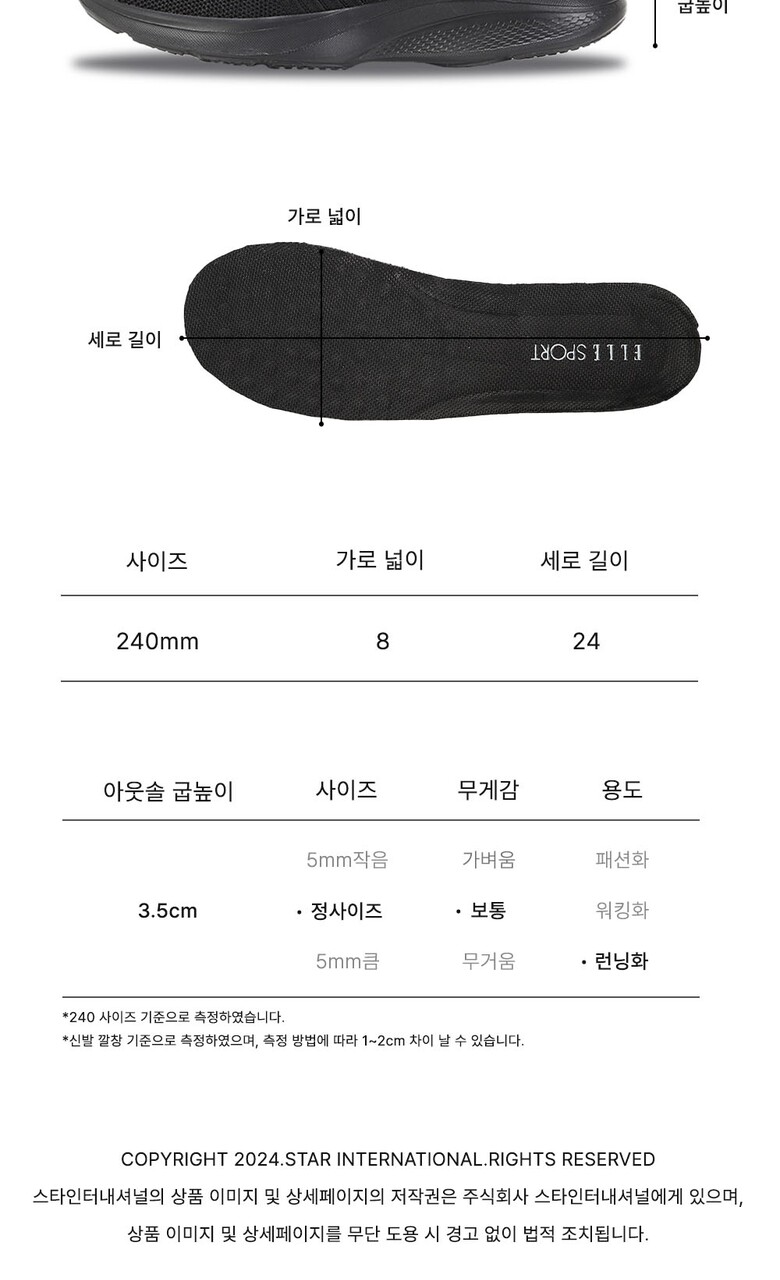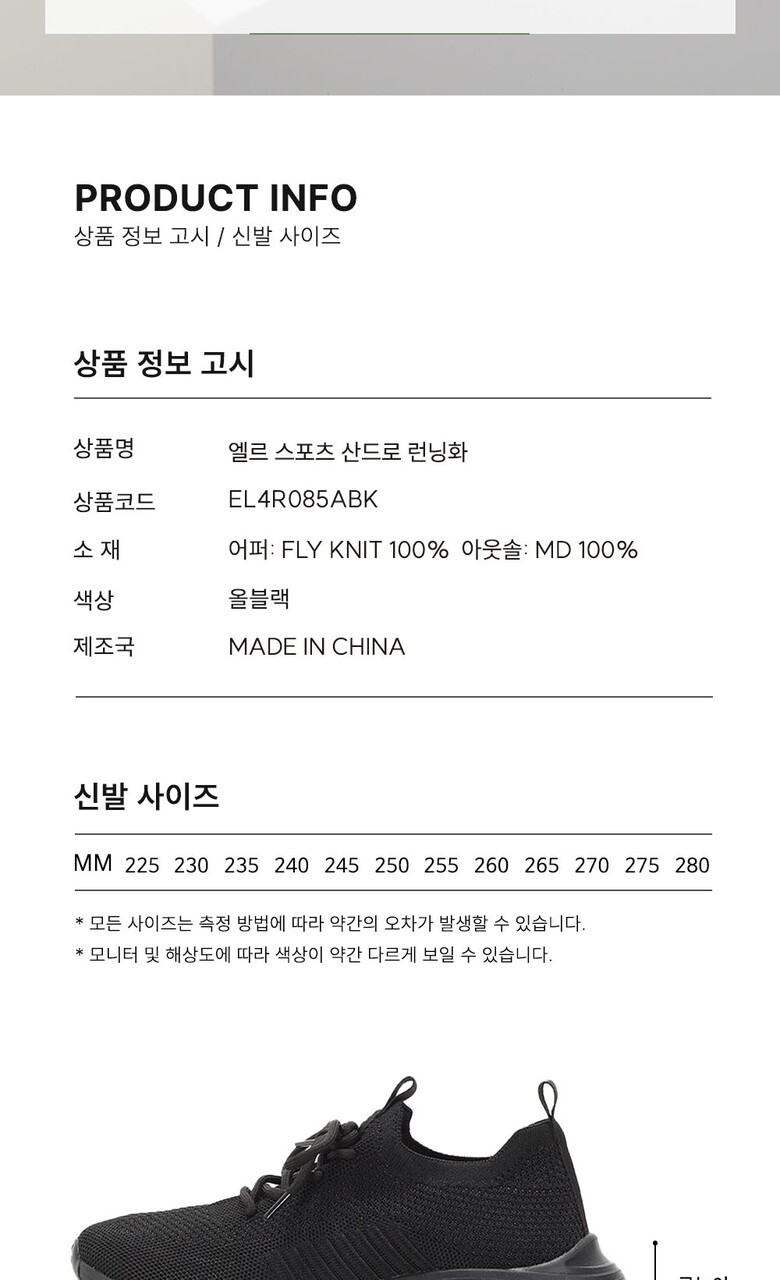 1. 제품 소재 (운동화인 경우에는 겉감, 안감을 구분하여 표시) | 상세페이지 참조 |