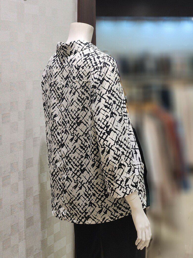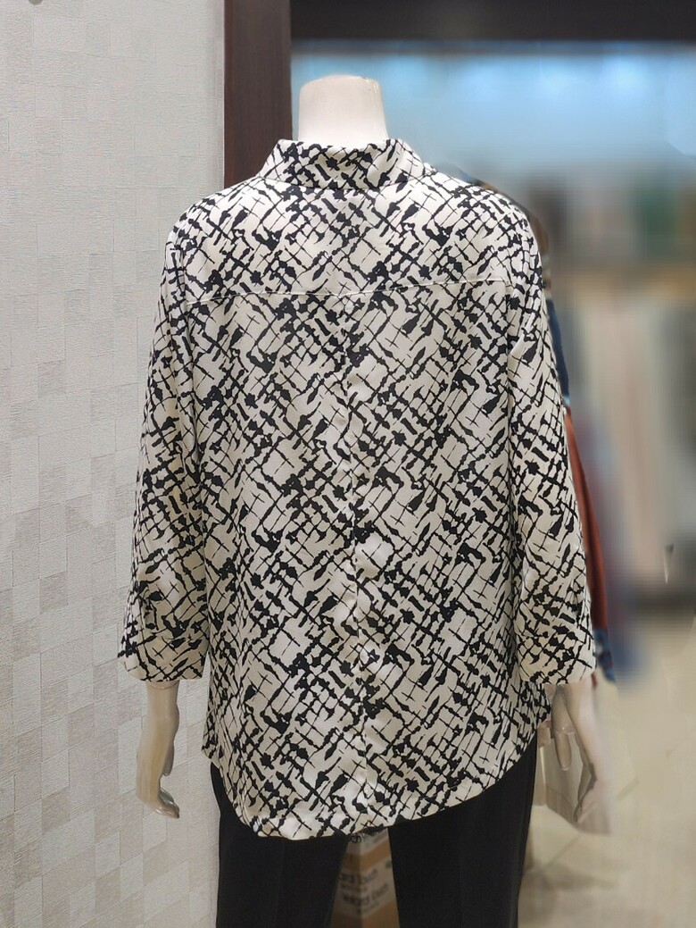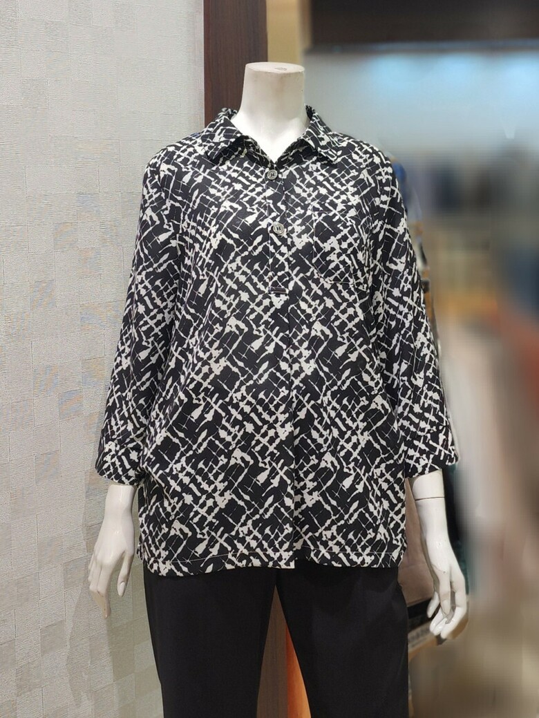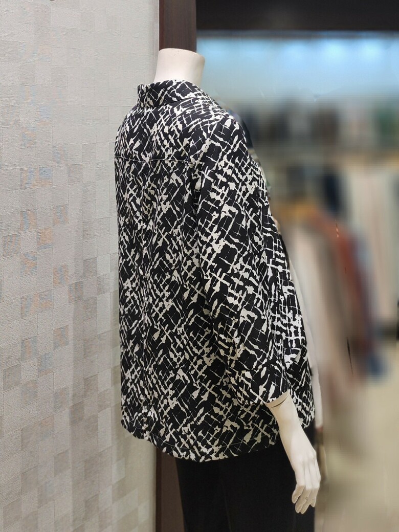 [벨라디터치] V9F2BL38 나염 반오픈 블라우스