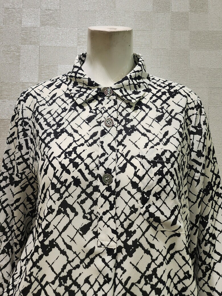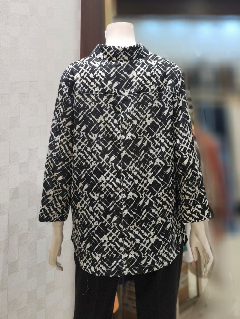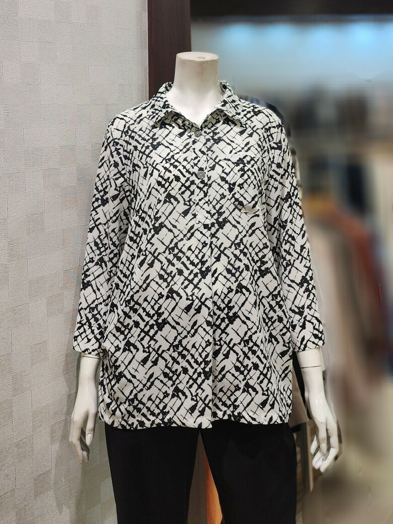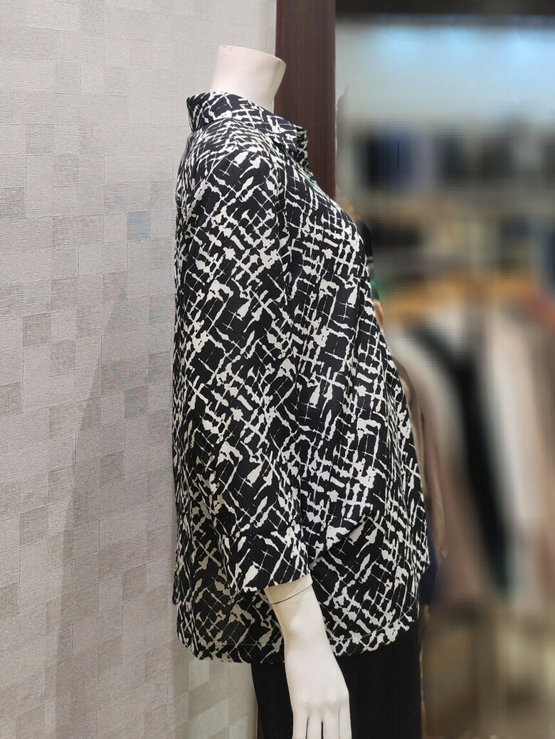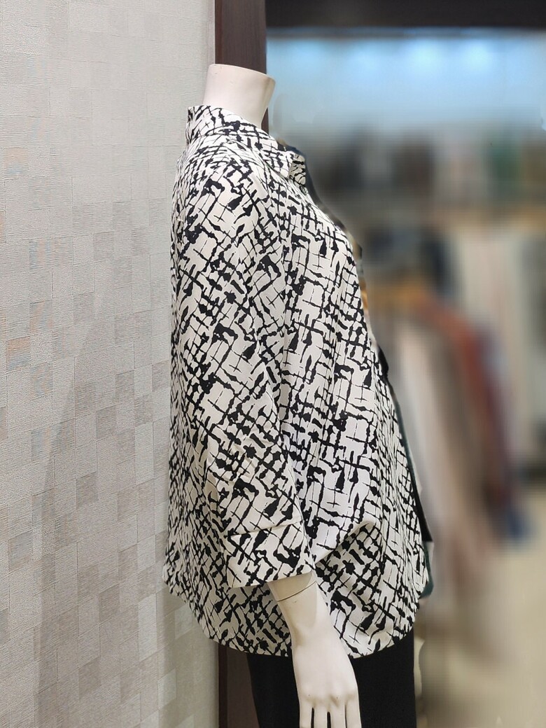 [벨라디터치] V9F2BL38 나염 반오픈 블라우스