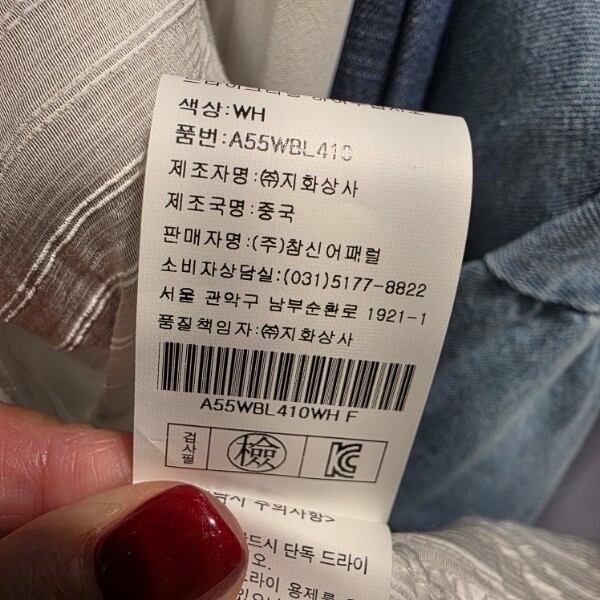 제조자 : (주)참신어패럴