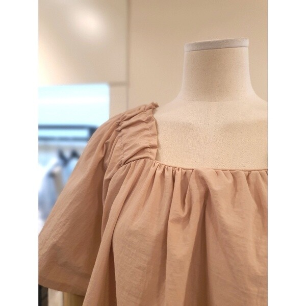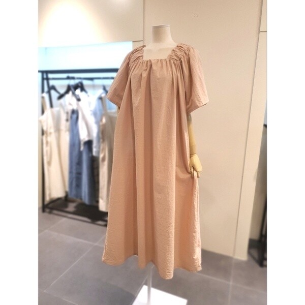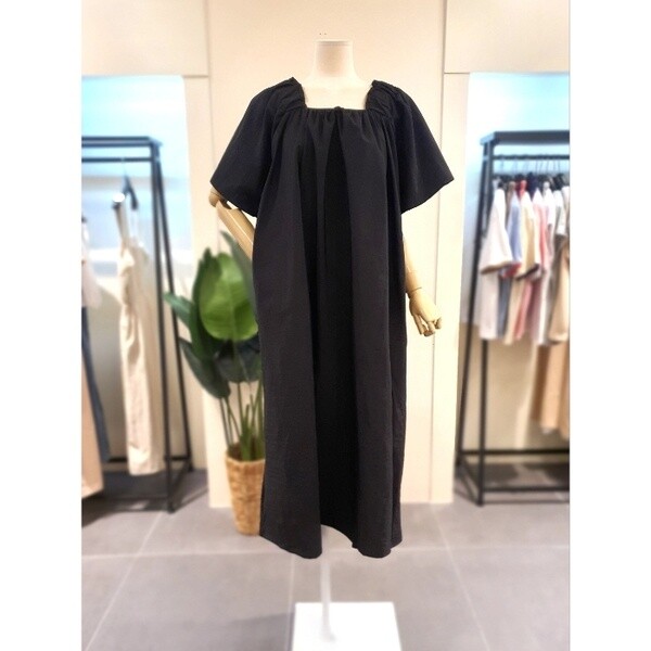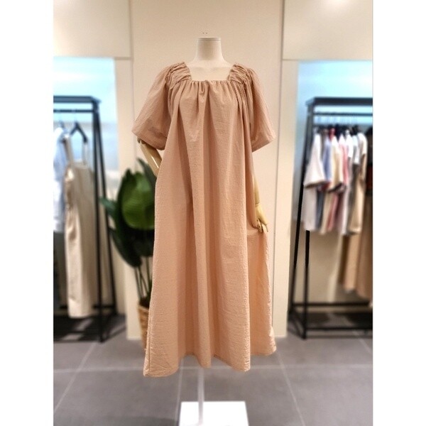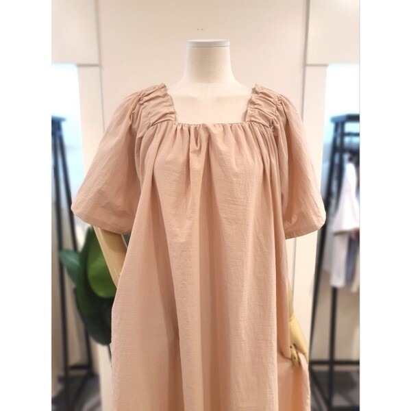 스퀘어넥과 퍼프 셔링 소매로 사랑스러운 롱 원피스입니다.