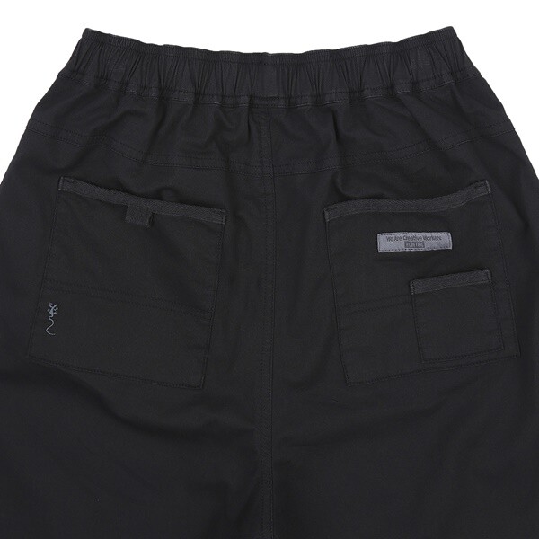 내추럴한 면스판 소재로 제안한 시크한 블랙 컬러 배기핏 우븐 팬츠입니다. 전체 통고무줄로 편안하게 제안하였습니다.