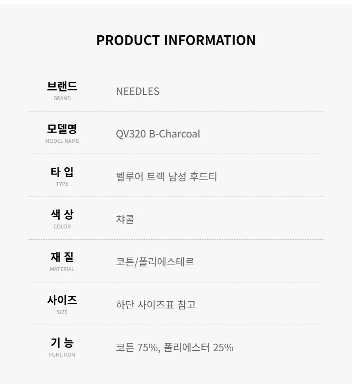 니들스 후드 QV320 B-Charcoal 벨루어 트랙 남성후드티 당일발송