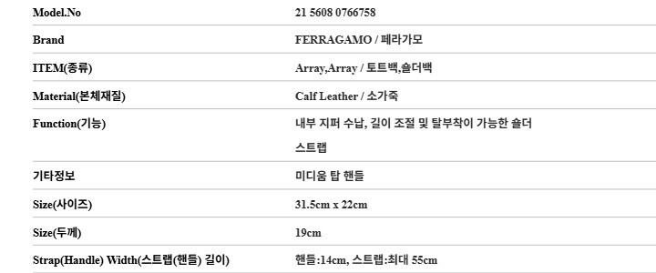 | 5. 제조사 | 페라가모/(주)언커먼레이블-병행수입 |