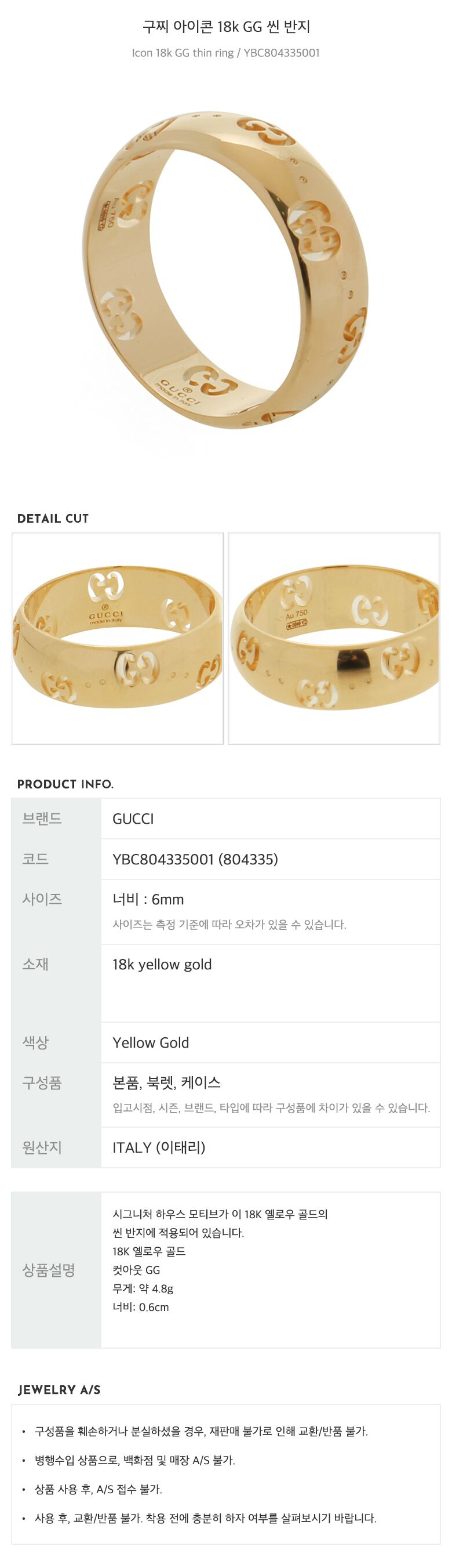 [명품] 구찌 아이콘 18k GG 씬 반지 / YBC804335001 804335