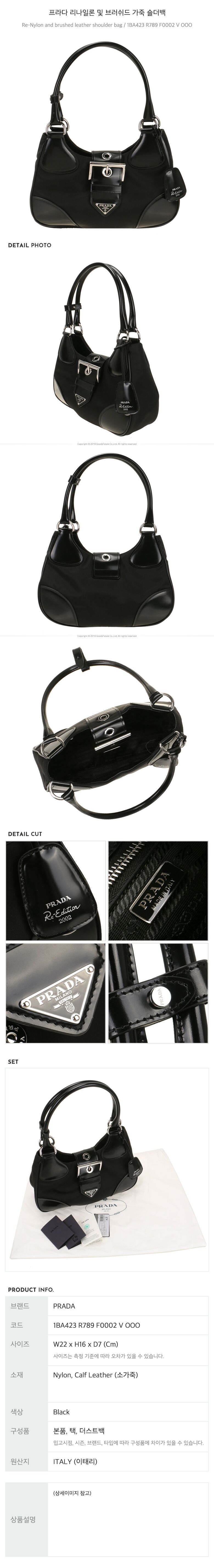 - #리본즈코리아 #1BA423R789F0002VOOO #[명품] #프라다 #리나일론 #및 #가죽 #숄더백 #/ #1BA423 #R789 #F0002 #V #OOO #여성 #가방/핸드백 #숄더백/호보백