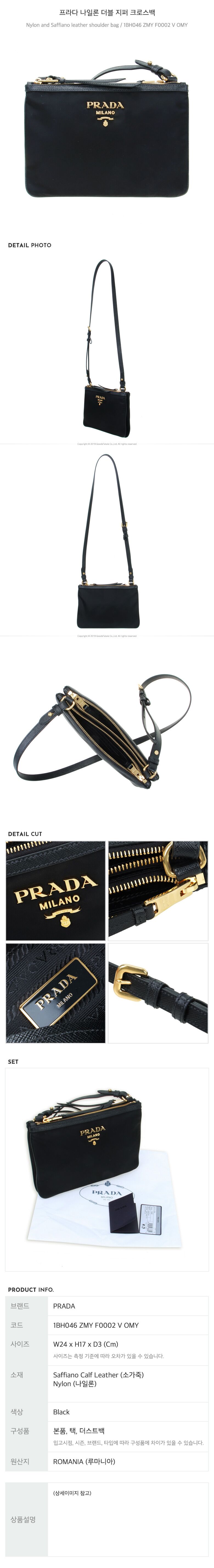 - #리본즈코리아 #1BH046ZMYF0002VOMY #[명품] #프라다 #나일론 #더블 #지퍼 #크로스백 #/ #1BH046 #ZMY #F0002 #V #OMY #여성 #가방/핸드백 #숄더백/호보백 #숄더백