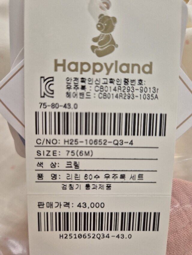 해피랜드 리린 60수 우주복 세트