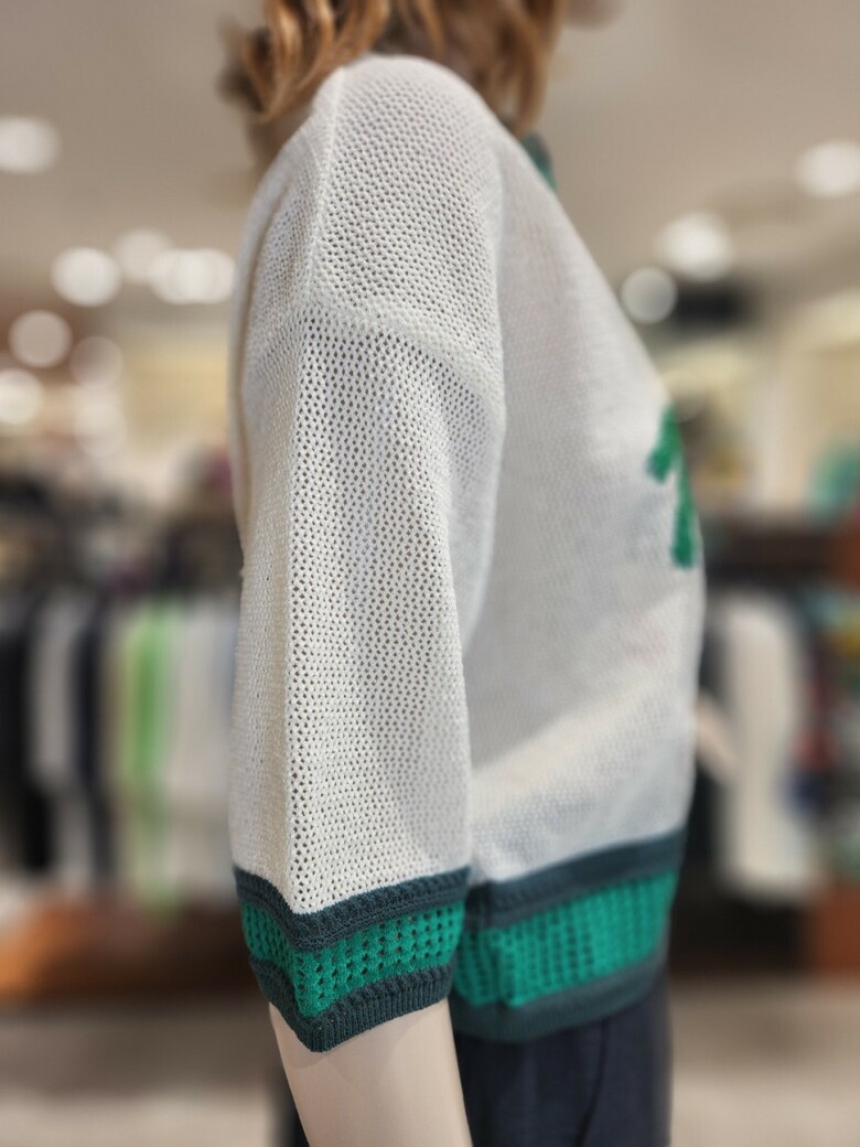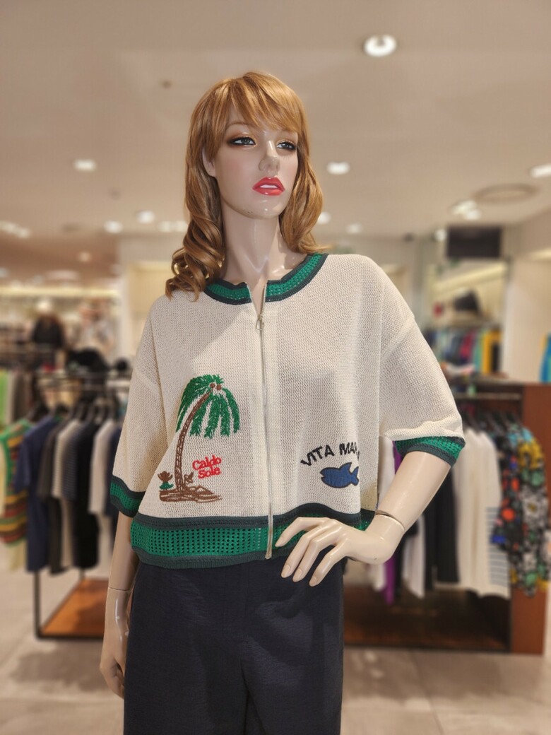 7.니트류는 자가드 프린트 기법으로 제작되어 앞부분에 예쁜 프린트처리가 되어 있습니다