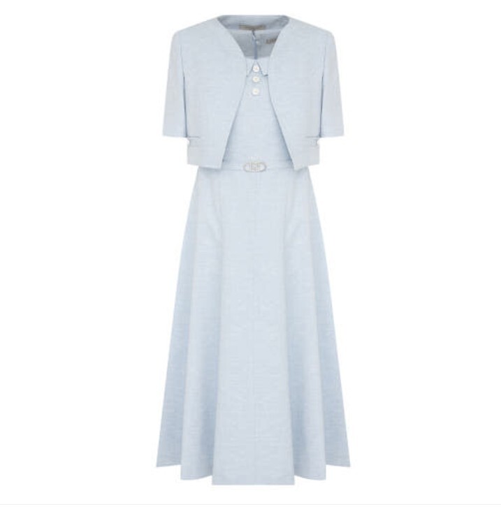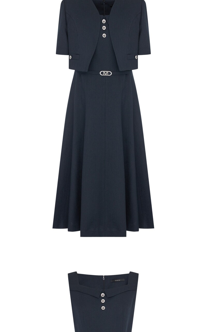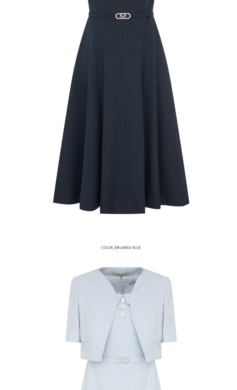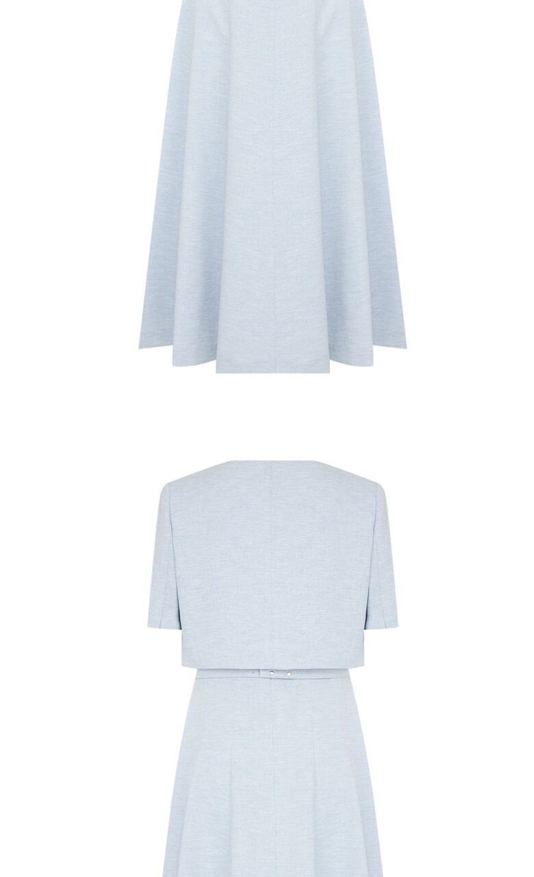 롱한 기장감의 슬리브리스 원피스와 반소매 크롭 자켓이 세트인 상품입니다.