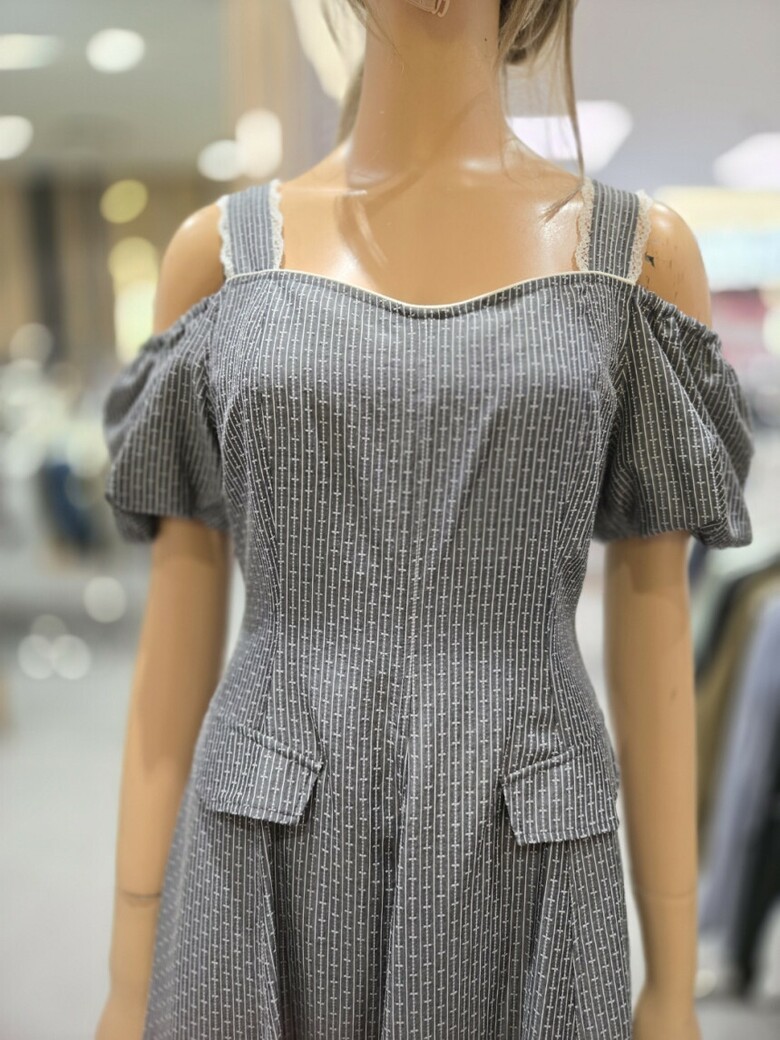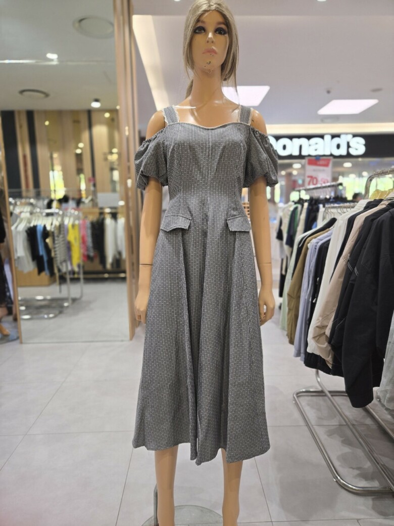 볼륨 드럽숄더 롱 원피스 ER2JO-602