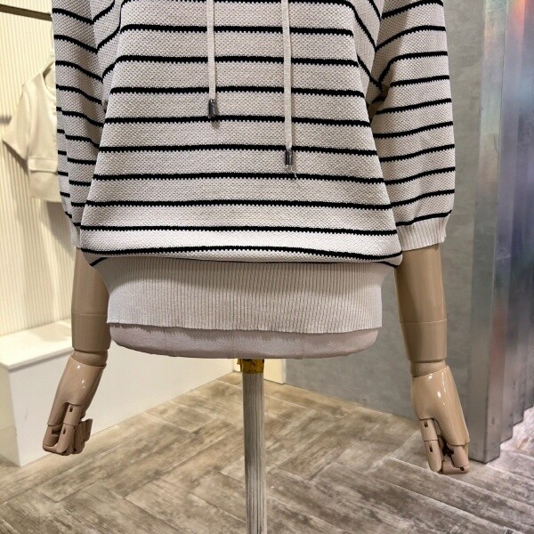 2025년 s/s 신상?스트라이프 후드 니트 입니다. 캐주얼한 디자인으로 코디 아이템 입니다.?