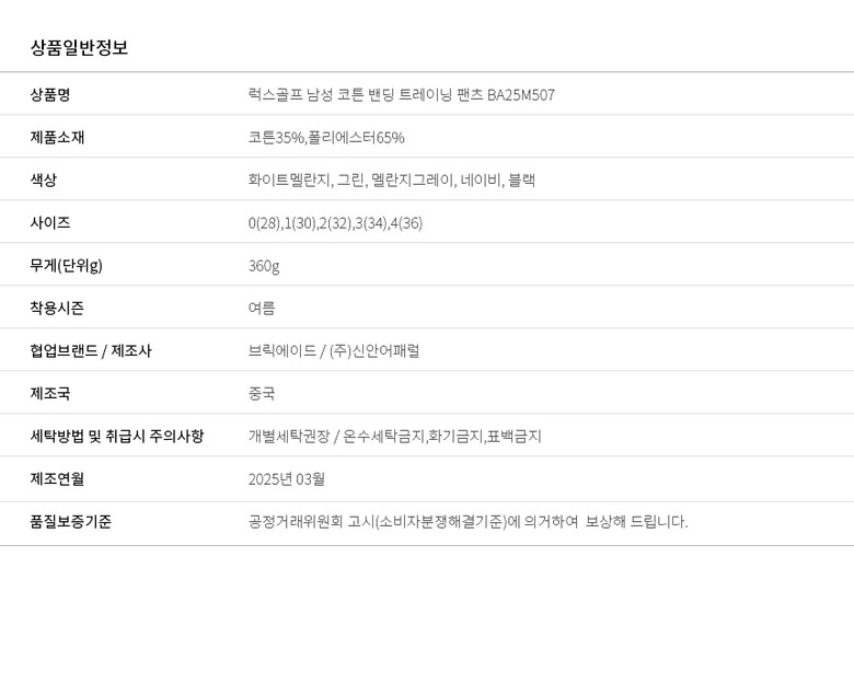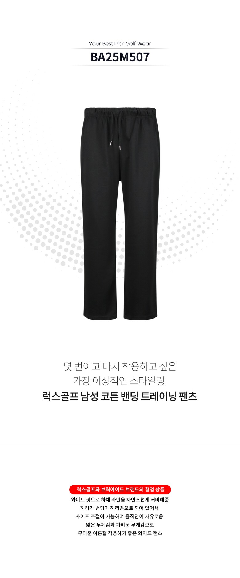럭스골프 남성 코튼 밴딩 트레이닝 팬츠 BA25M507