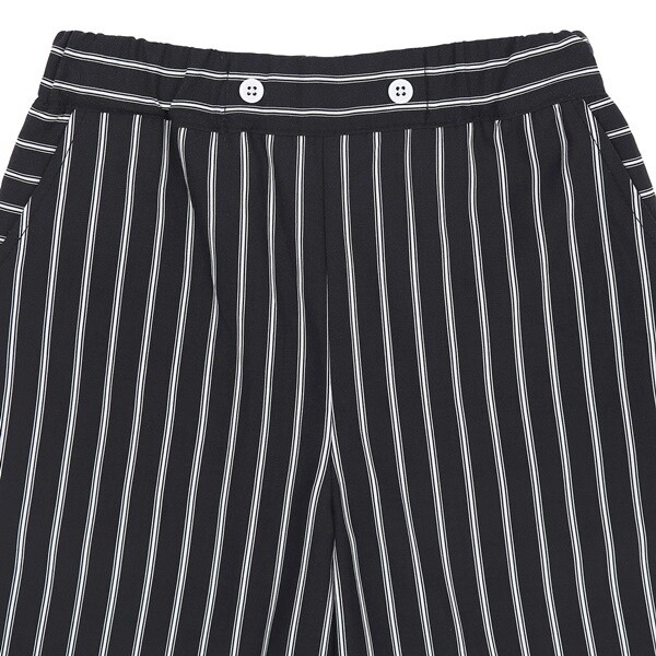 블랙, 화이트 스트라이프 프린트 소재를 사용하여 세련된 감성이 느껴지는 반바지입니다. 얇고 부드러운 소재로 시원하게 착용할 수 있으며, 미니멀한 디자인이 돋보이는 아이템입니다.